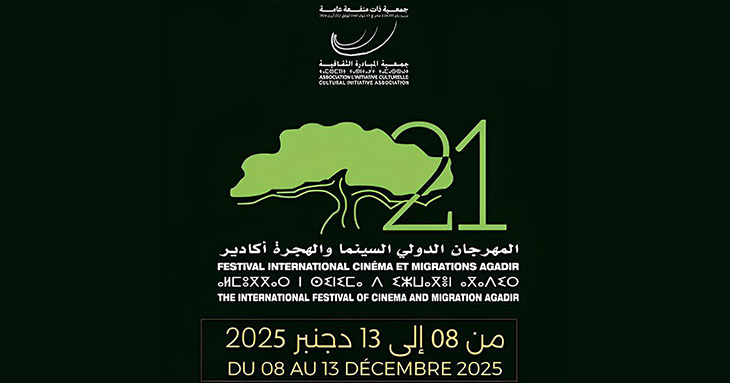 La ville d’Agadir accueillera, du 8 au 13 décembre 2025, la 21ᵉ édition du Festival international Cinéma et Migrations. L’événement est organisé par l’association L’Initiative culturelle en collaboration avec plusieurs institutions locales et nationales, dont la wilaya de Souss-Massa, la région Souss-Massa, la commune d’Agadir, le Conseil de la communauté marocaine à l’étranger et le Centre cinématographique marocain.