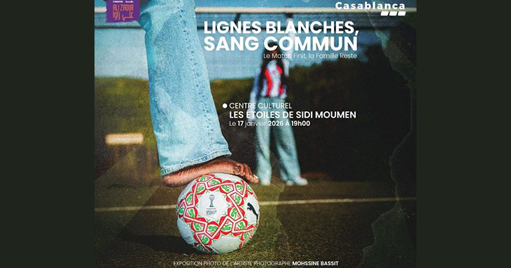 Jusqu’au 31 janvier, l’artiste photographe Mohssine Bassit présente une nouvelle exposition intitulée Lignes Blanches, Sang Commun, un projet visuel qui s’inscrit dans la continuité de sa recherche artistique autour du corps féminin. Réalisée en partenariat avec la Fondation Ali Zaoua, cette exposition s’appuie sur l’univers du football pour aborder les notions de lien, d’appartenance et de mémoire collective à l’échelle du continent africain.