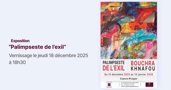 Annonce de l'exposition "Palimpseste de l’exil" de Bouchra Khnafou